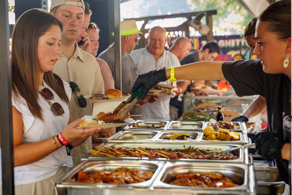 In een exclusieve area, waar de ’80s hits uit de speakers knallen, geniet je van een geheel verzorgde, luxe BBQ door onze traiteur Van Zoggel. Uiteraard met het beste en meest malse vlees uit het Woudse Land, aangevuld met verse salades, smaakvol ovenvers brood en heerlijke bijgerechten.